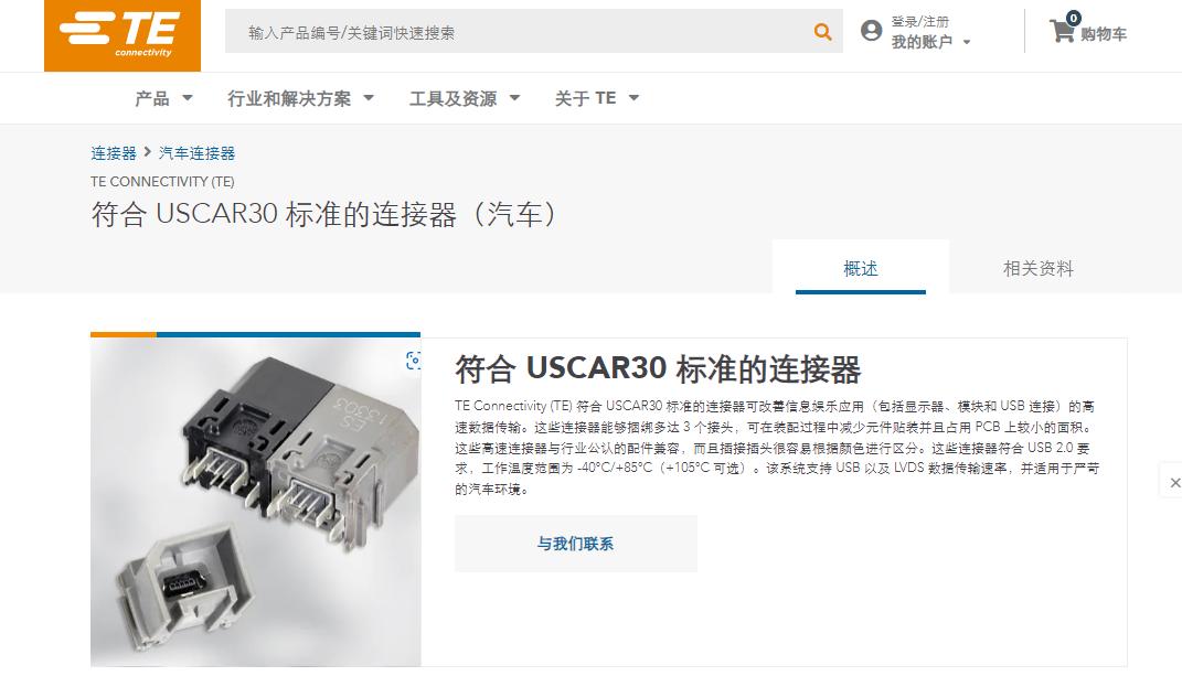 某款USCAR30 合规的 USB 连接器 图片来源: TE Connectivity
