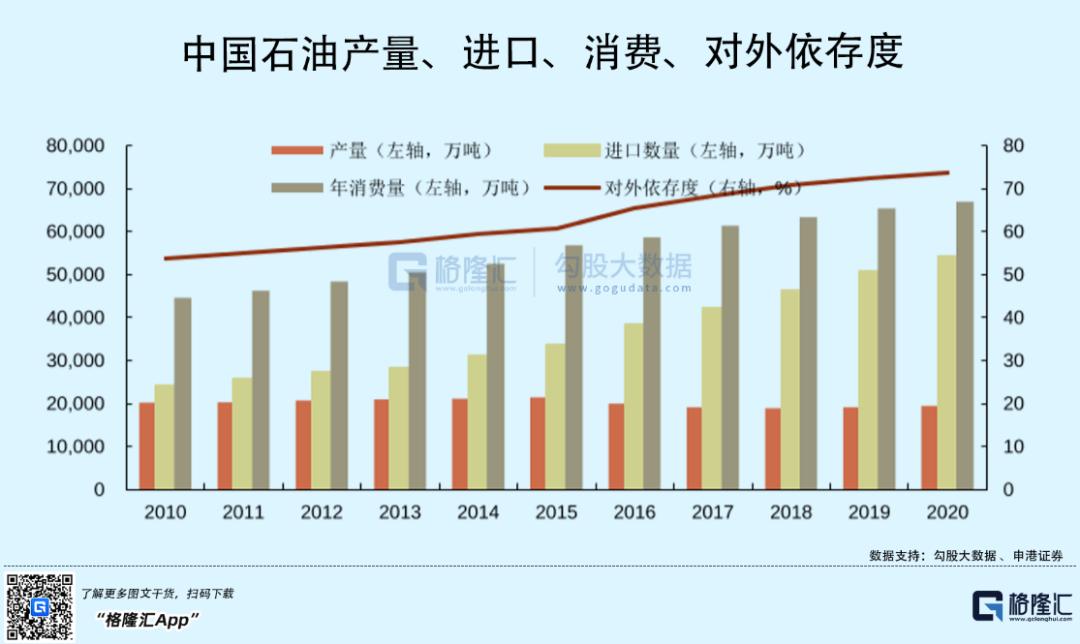 仅看2021年,我国的石油需求量为7.03亿吨,占全球15%。