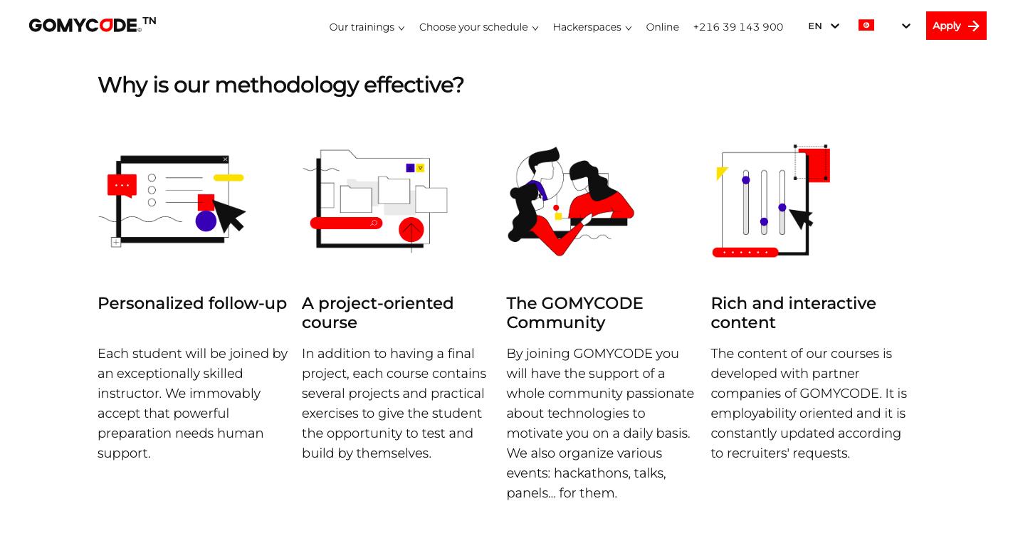 在「GOMYCODE」,学生需要花费50%的时间完成在线课程,剩下50%的时间在20个线下学习中心完成。Bouhlel表示,「GOMYCODE」拥有超过500人的教师团队,能使用超过12种语言进行教学。