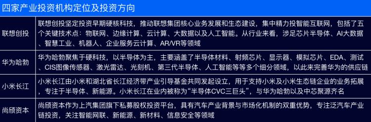 从这四家机构的定位来看,均侧重产业投资而非单纯财务投资,且都聚焦于硬科技投资,关注半导体、人工智能、云计算、智能制造、新能源等硬科技关键领域,投资方向基本都落在制造业十大重点产业领域及工业“四基”范畴内。