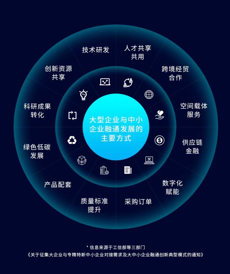 发挥大型企业的引领带动作用、中小企业的基础和支撑作用,促进产业链上中下游、大中小企业融通创新,构建“以大带小、以小托大”的生态模式,已成为政府和产业界的共识。