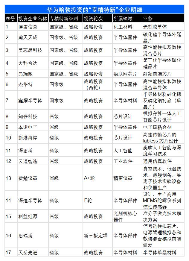 华为哈勃投中17家“专精特新”,集中分布在半导体产业链。