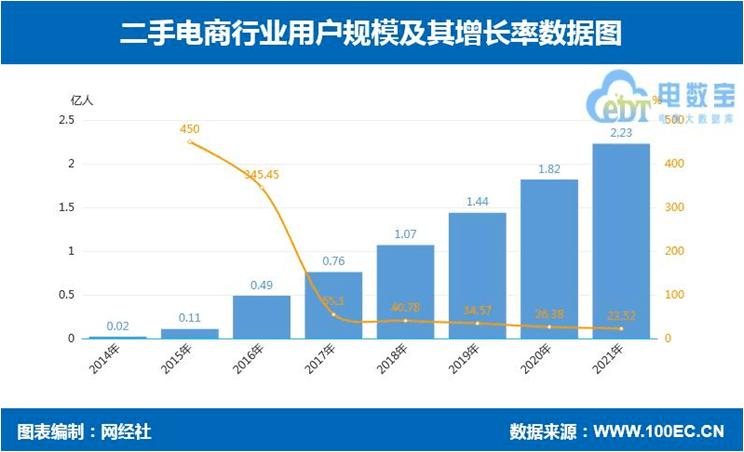 从未来趋势来看,中国二手经济尚处于高速发展阶段,还有巨大的增量空间,据网经社估计,2021年二手电商用户规模为 2.23亿人,同比增长22.52%。未来会有越来越多的品类走向二手市场流转,服务与信任价值变得越来越重要。
