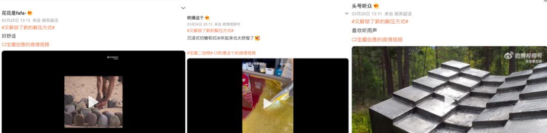 另外就是看一些规律性强的视频,比如像之前热搜里出现过的把石头摆整齐、把糖纸裁剪成形状规则。