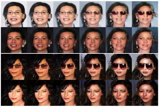 借助耦合 GAN,伪造人也可以戴上太阳镜或者佩戴珠宝首饰。但这些人脸本身仍然存在很多瑕疵,“一眼假”问题继续存在。