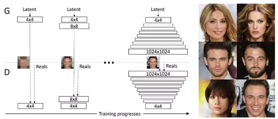 英伟达就此给出解决方案:分阶段训练网络。首先,由伪造 AI 学习创建低分辨率图像。之后,将分辨率逐渐提升。