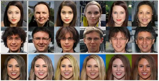上图中的人脸有什么共同点?答案是:没有共同点。它们都是由 AI 虚构而来。更确切地说,它们是由 AI 从几百万张像素图片中总结学习而来,最终创作出了难辨真伪的结果。