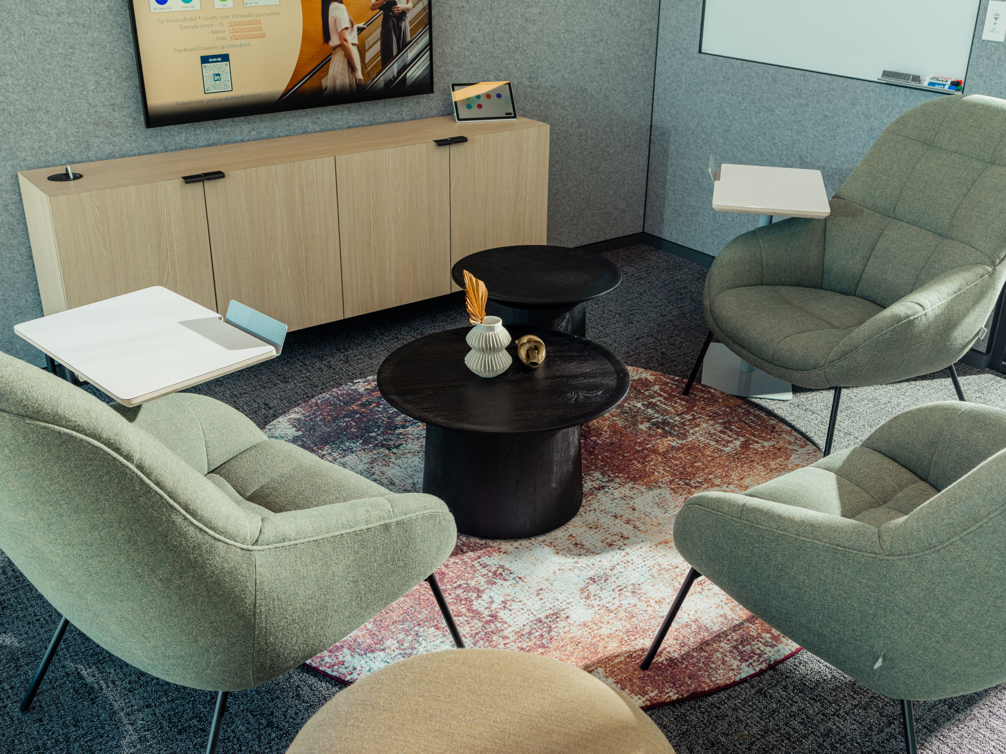 会议室的格局逐渐打破了传统的长方形。在许多情况下,由于会议变得不那么正式,而且新的混合工作模式意味着现场出席会议的人越来越少,会议规模也变得越来越小。