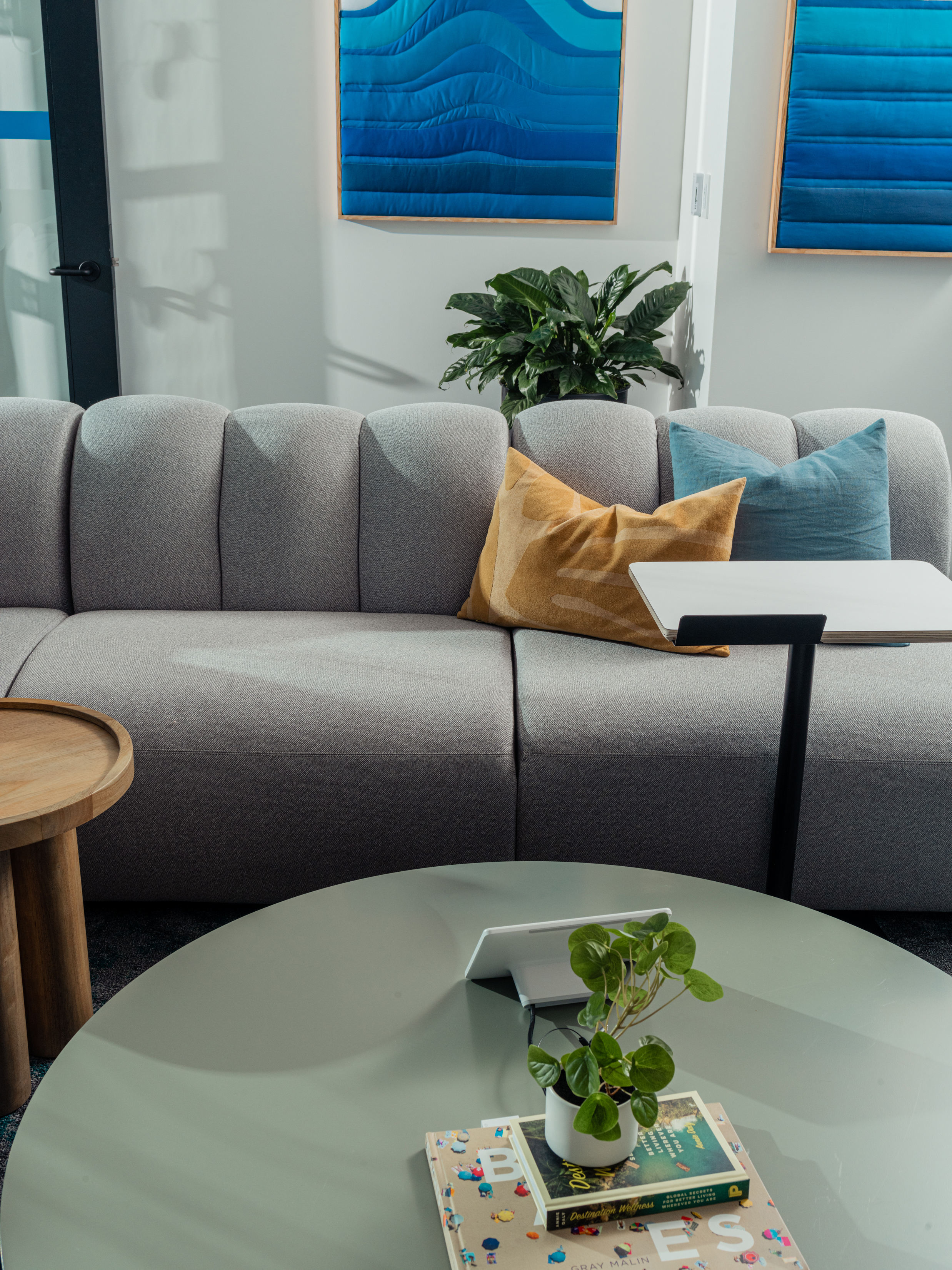 领英在休息室式会议室(lounge-style conference room)完全取消了中央桌子。每个房间都有一个软塌塌的沙发和抱枕,还有很多植物和书籍。布里茨说,这种放松的外观旨在帮助与会者感到舒适,并鼓励“在严肃环境中可能不会发言”的员工。