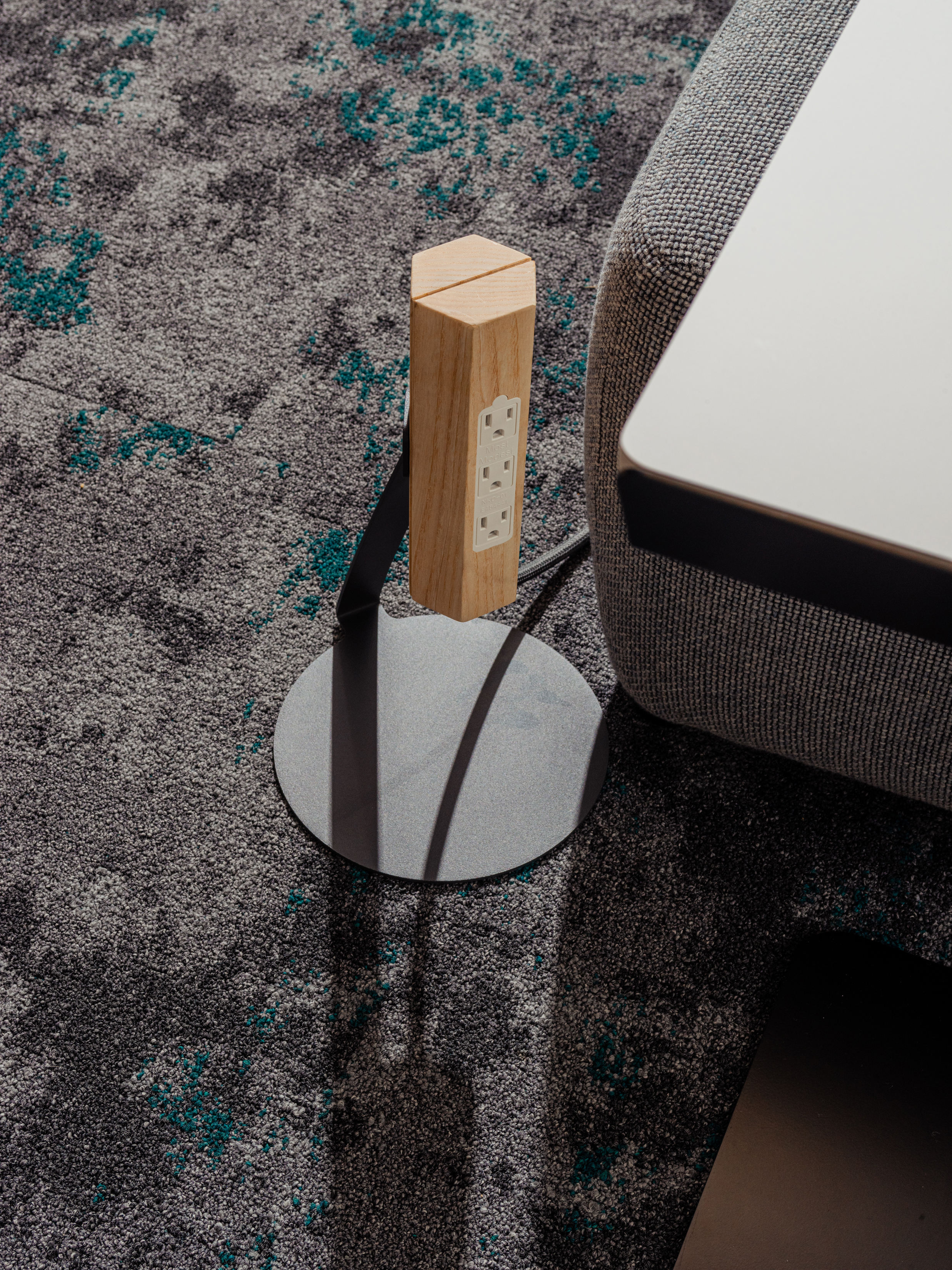 2022年4月15日,在加州山景城,领英办公室的休息室式会议室(lounge-style conference room)内的充电设施。(Kelsey McClellan/The New York Times)