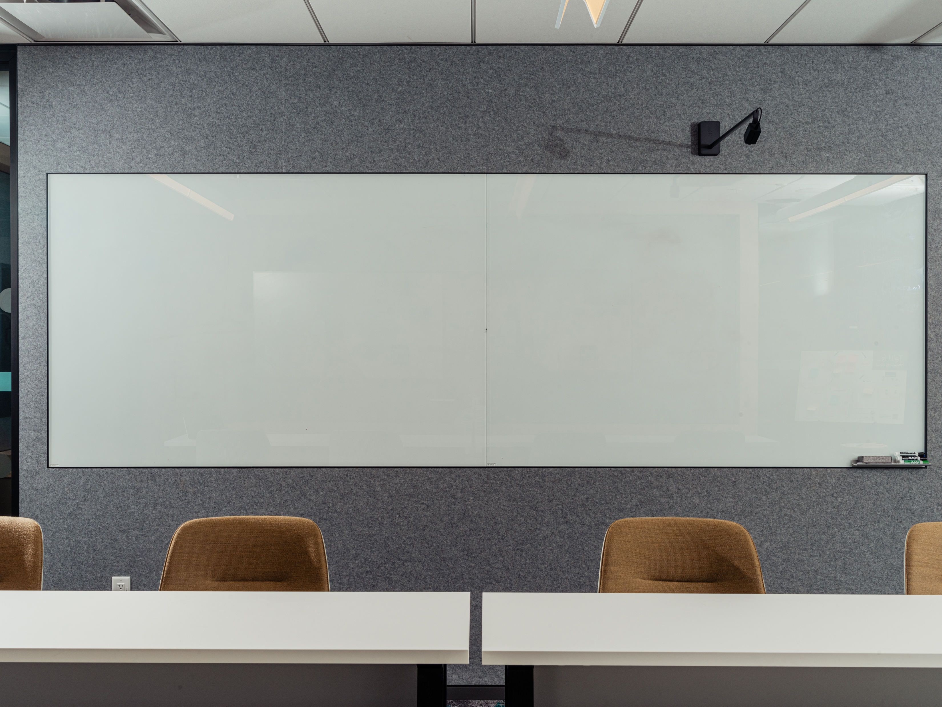 在传统的会议室中,屏幕通常被放置在一堵短端墙上,迫使会议中的每个人都要转过身来面对它。Skidmore, Owings & Merrill 公司意识到,会议室里的大多数人都坐在桌子的长边,所以他们在会议室的长边对面放置了屏幕。