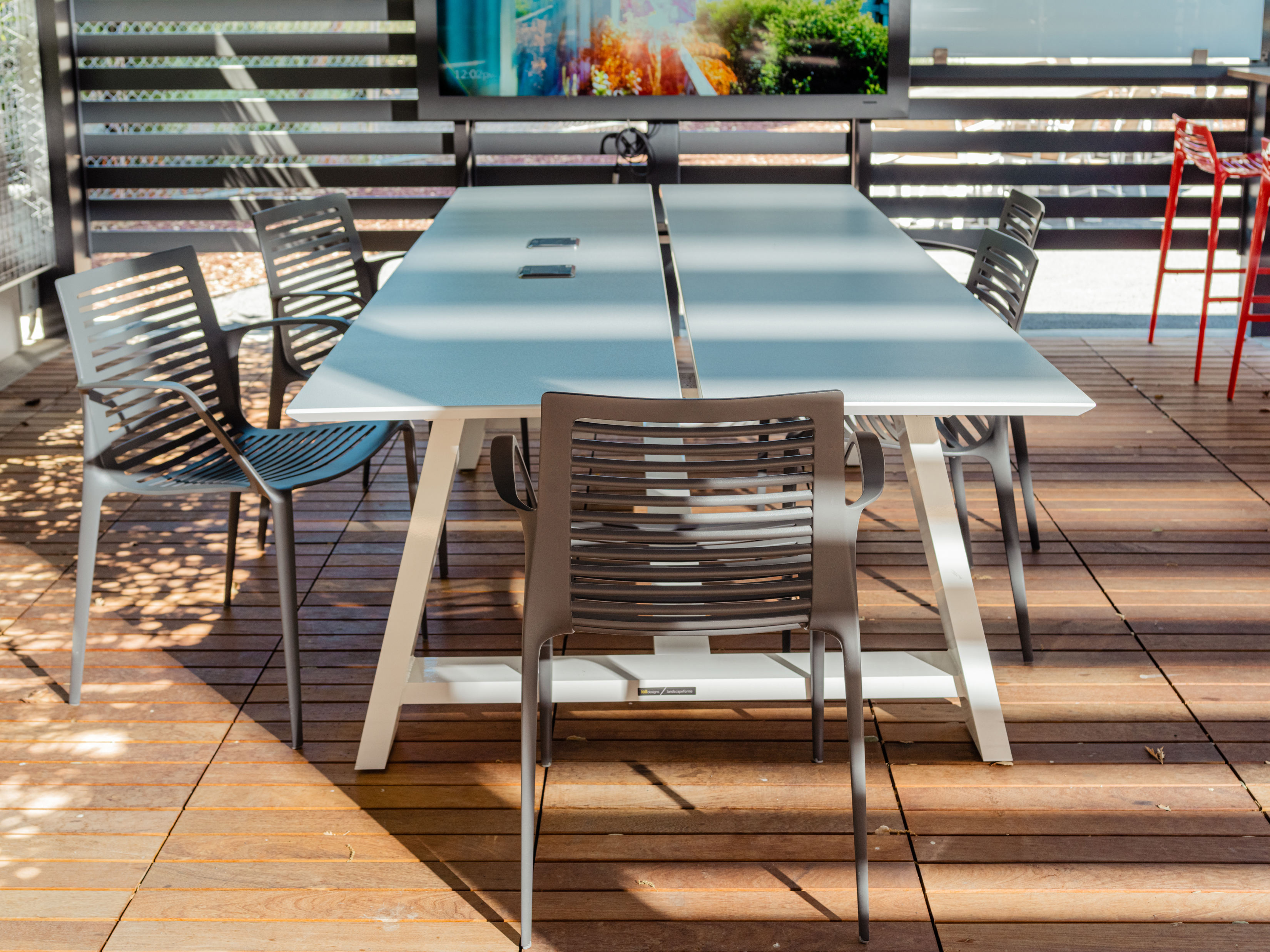 越来越多的会议室出现在建筑物的舒适空间中,甚至在室外。