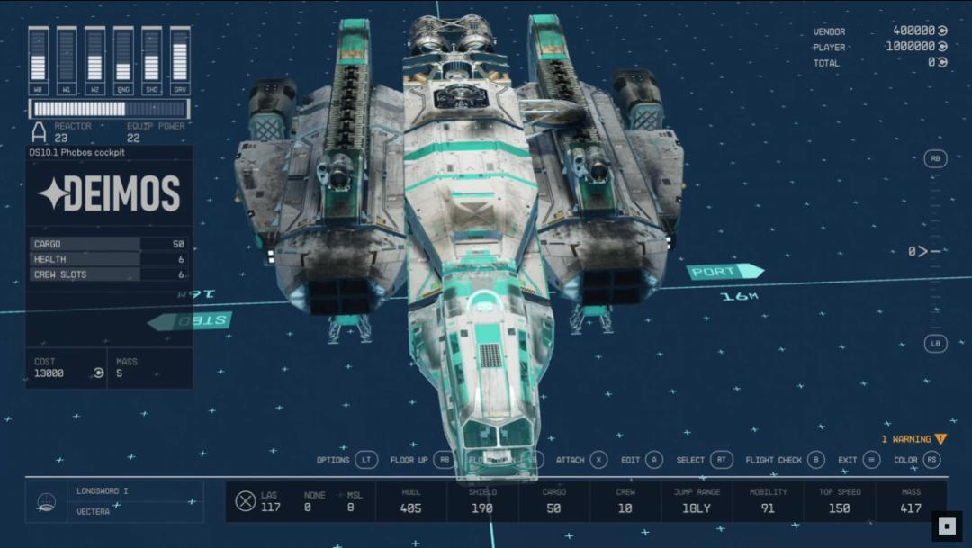 《星空》还提供了高客制化的制作系统,玩家可以自定义自己的武器模组,建造自己的太空前哨站,甚至,玩家可以自定义自己的宇宙战舰,雇佣自己的船员。通过在游戏内订购不同制造商的飞船模组,玩家可以自由改造自己的飞船外观,并且飞船的外观会直接影响到它的性能,毕竟玩家真的可以驾驶自己的飞船在太空中与其他战舰对战。