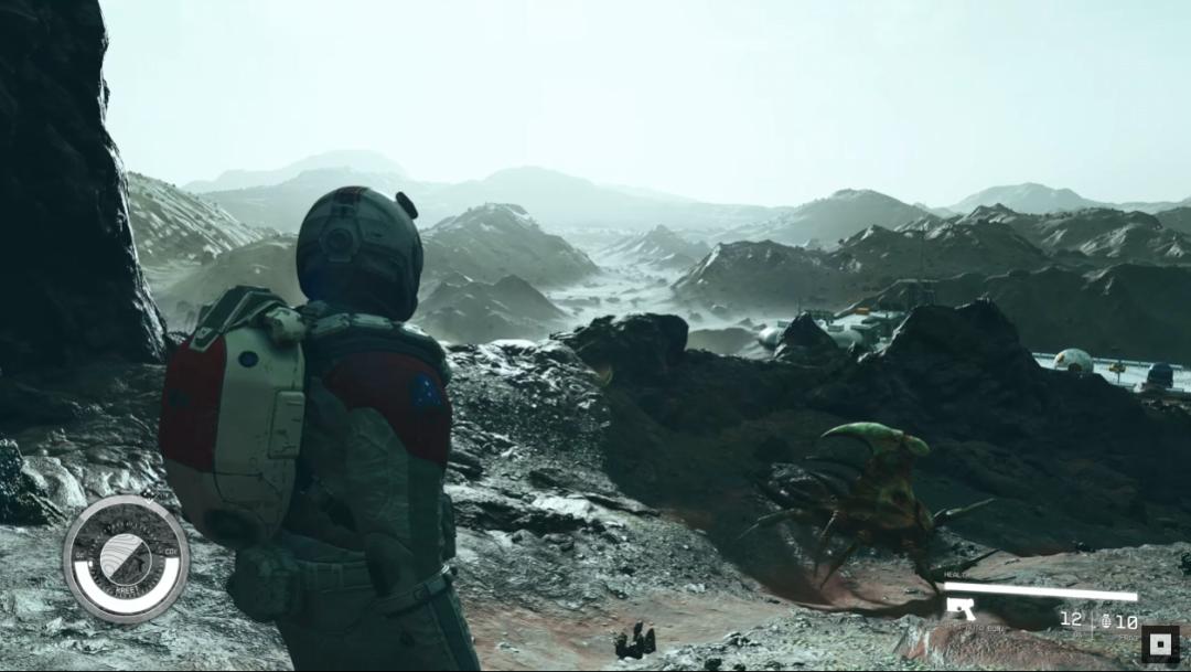 本次发布会上,Bethesda 公开了一段时长约 15 分钟的实机演示,以及大量与玩法相关的消息。从演示内容看,《星空》的核心玩法将是射击,并且玩家可以在第三人称与第一人称之间切换。游戏中的敌对单位保留了 RPG 中常见的等级机制,在一小段战斗演示中,主角还可以通过弹射起跳实现地形飞跃和短时间的滞空。