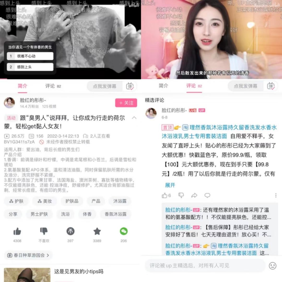 还有女性UP主带货男性商品,会比男生UP主的效果要好。