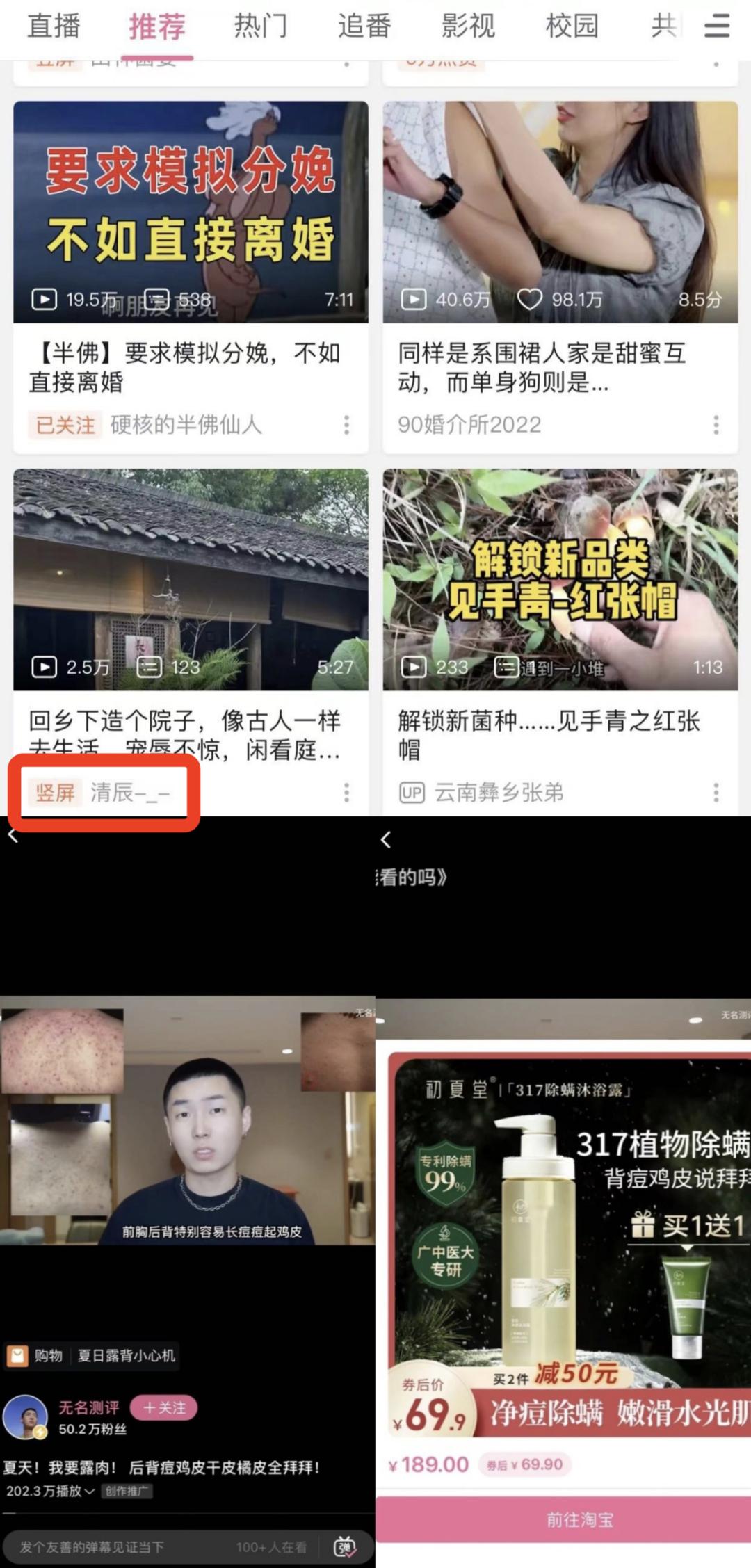 去年Story-Mode竖屏视频上线,横着的B站竖了起来,随着短视频挂车的功能开通,一些低客单价的除螨沐浴露、高效清洁剂等低客单价商品开始在B站跑通。