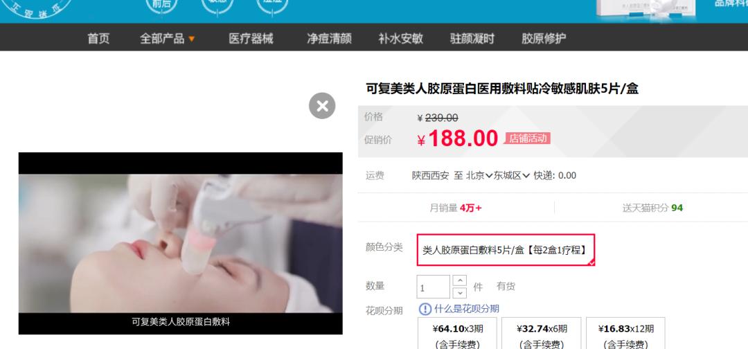巨子生物的可复美医用敷料,就属于“械”字号产品,医用、安全成为其卖点。巨子生物可复美、可丽金面膜40元/片的高价就靠这个“械”字来站台。