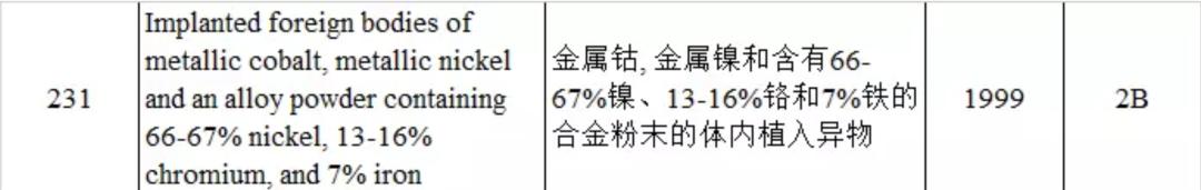 除此之外,尽管尚未证实含钴的髋关节植入物与癌症之间的关系,但目前国际癌症研究机构 (IARC) 已将植入的含钴金属归为 2B 类,即「可能对人类致癌」,而另同样也会被植入的假体释放的三价铬离子也已经被列入潜在致癌物。