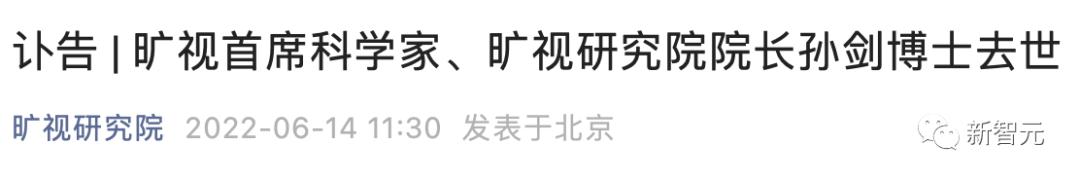 我们万分难过,旷视首席科学家、旷视研究院院长孙剑博士因突发疾病抢救无效,于2022年6月14日凌晨,永远离开了我们。