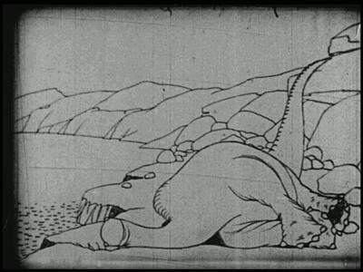 有关恐龙的动画作品,最早可追溯到1914年的《恐龙葛蒂》。在这部动画里,葛蒂会哭、会高兴地跺脚,还会摇尾巴撒娇,被赋予了一定的角色个性化。这部首次使用动画角色实现真人演员表演的短片,对整个动画行业未来的发展带来了巨大的启发,在昂西动画节发表的《动画的世纪·100部作品》中,《恐龙葛蒂》位列第一名。