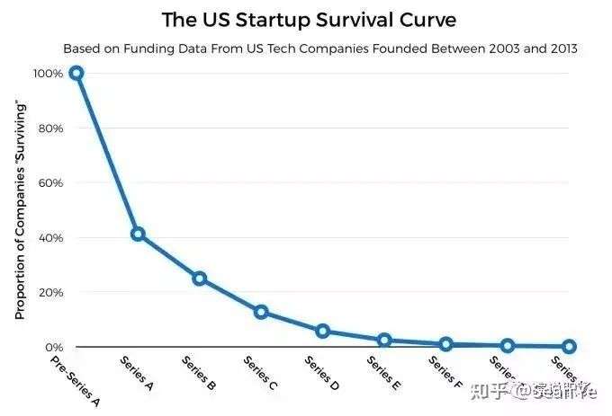 03年到13年之间,如果有1000家企业融到了Pre-A,那么能活到A轮的只有400家,这意味着60%的初创公司撑不到A轮就挂了。