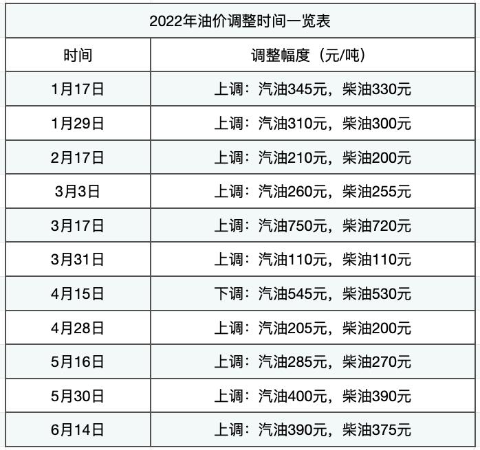 国家发改委宣布,自6月14日24时起,根据近期国际市场油价变化情况,按照现行成品油价格形成机制,国内汽、柴油价格每吨分别提高390元和375元。