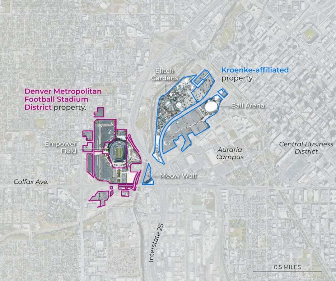沃尔顿家族占有丹佛CBD附近的一大片宝地 图片来源:科罗拉多公共广播电台