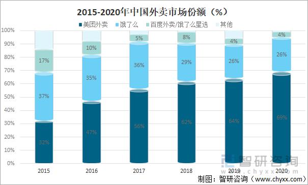 根据智研咨询整理,2020年美团外卖占据中国外卖市场份额的69%,饿了么+饿了么星选大概占中国外卖市场份额的30%。