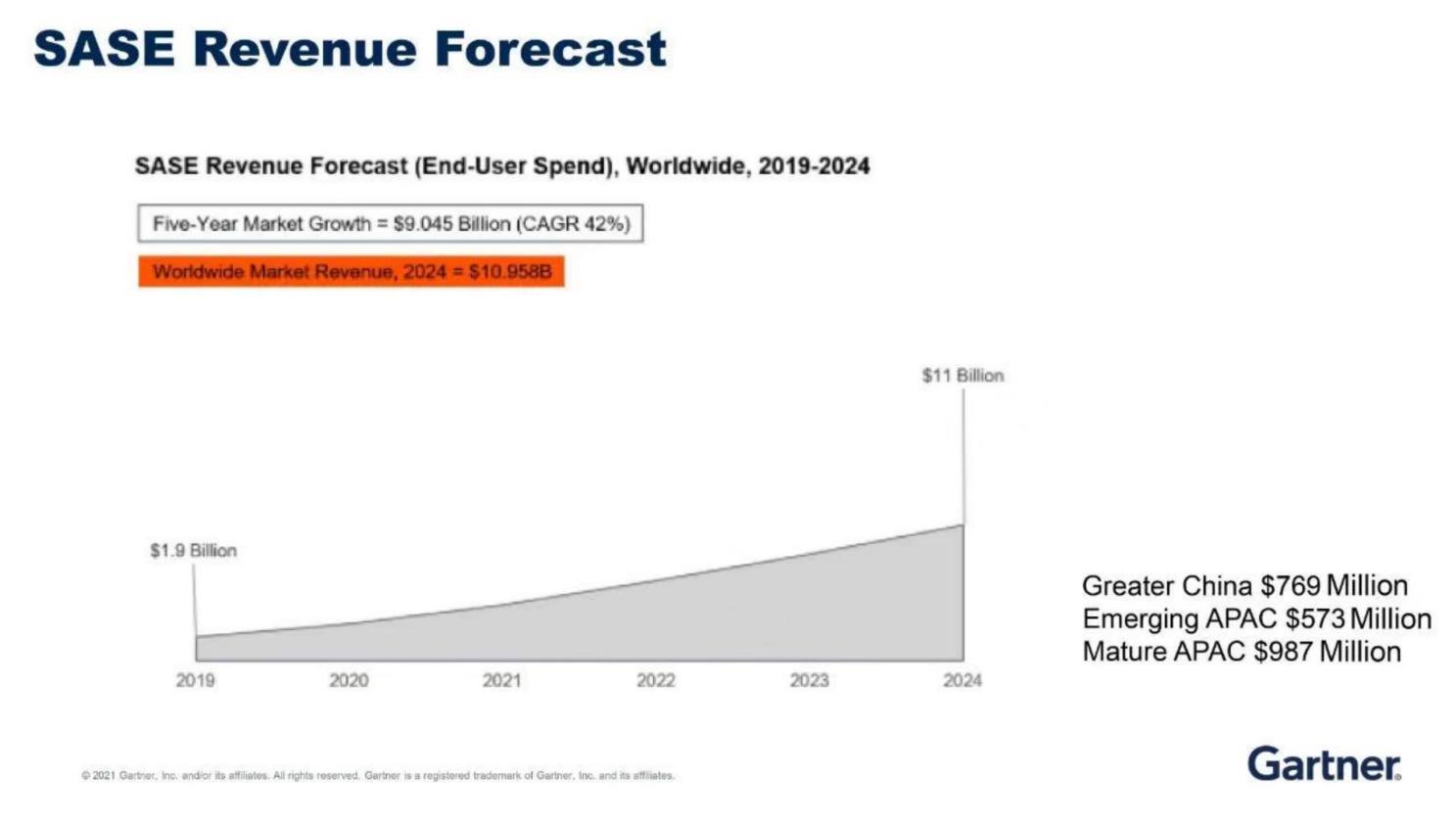 Gartner 2019-2024全球SASE市场规模预测