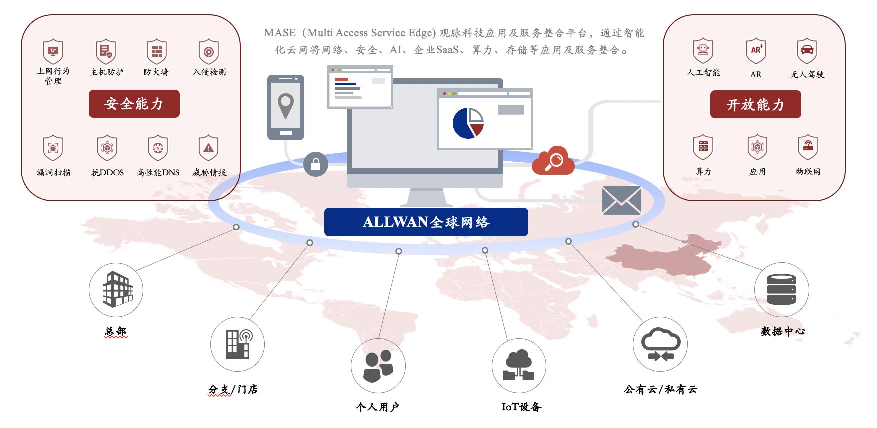 借助于SASE的实践,在现有的ALLWAN全球实时网络中,观脉增加“服务区”这一角色,将企业级SaaS、SASE、公有云服务等整合纳入网络,并为此不断寻找新的合作契机。