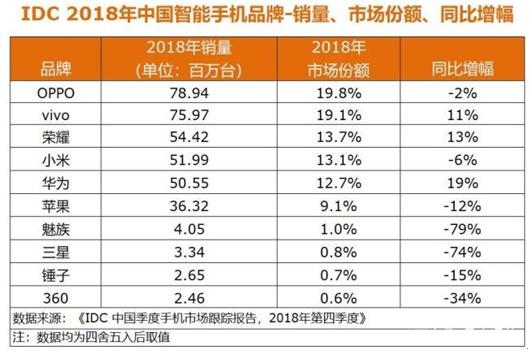 然而,2018年,形势急转直下。这一年,魅族只卖出了405万部手机,市场份额同比下滑了79%。