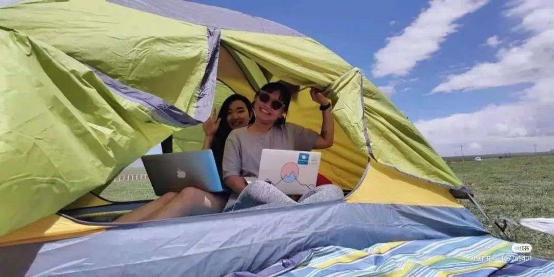 图/yeye在祁连山草原办公露营 来源/yeye提供