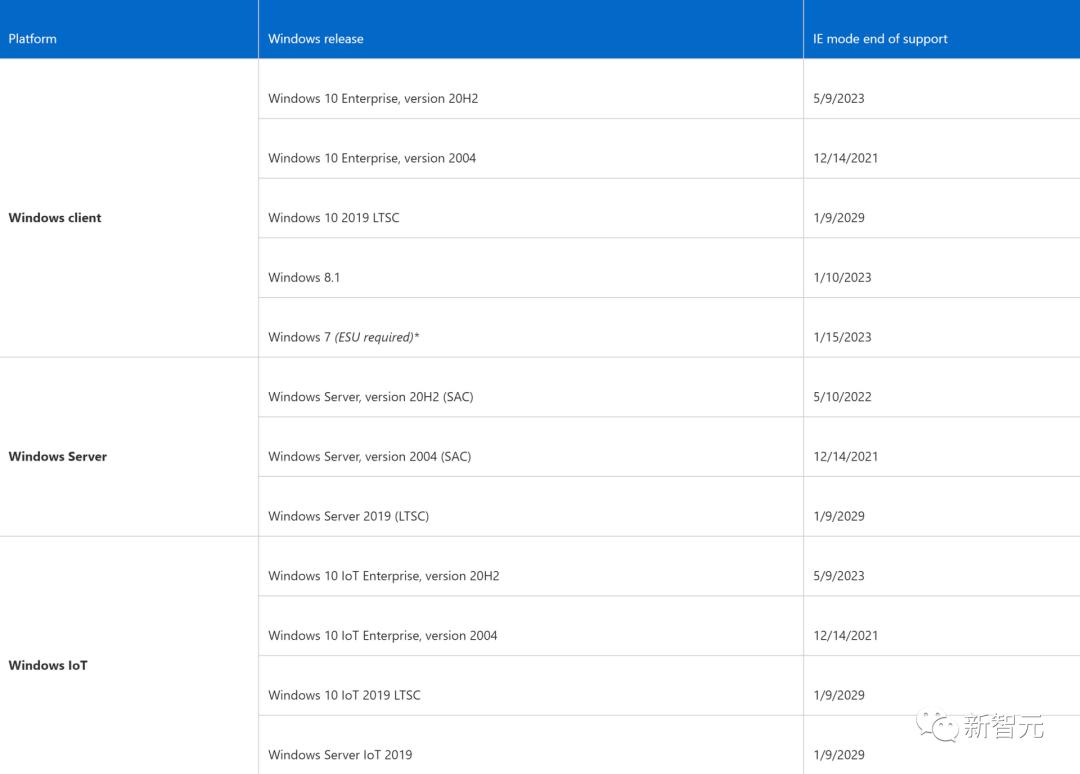 说到IE模式,微软还透露了不同Windows版本的IE模式结束支持的时间: