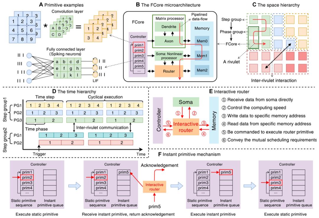 研究人员还设计了一个具有多精度计算的统一原语指令集,以支持ANN(人工神经网络)、SNN和交叉建模的高可编程性和多功能性,并将原语进一步划分为不同的硬件模块,以确保硬件资源的最大化共享。