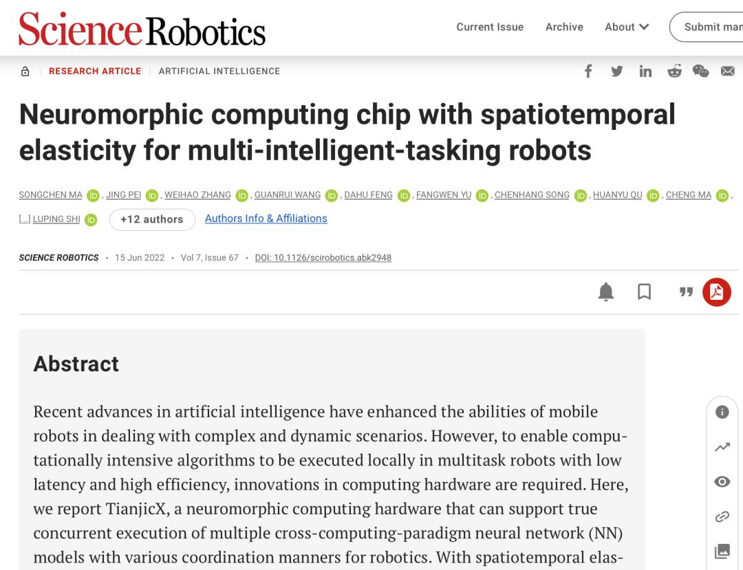 TianjicX芯片能提高机器人在复杂和动态环境中处理多用途和多智能任务的能力。
