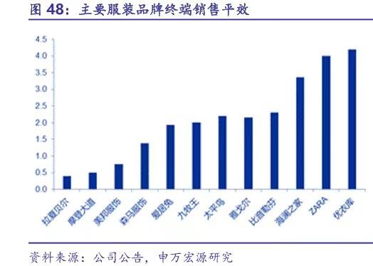 部分服装品牌销售年坪效,图据申万宏源