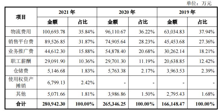 物流渠道费用明细 来源:招股书