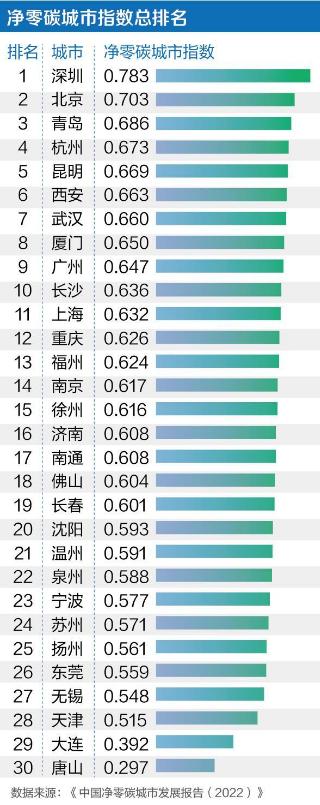 据国家发改委初步分析,按照八大行业来测算,未来的碳排放量将会达到每年30亿到40亿吨的规模。因此如何运用新技术去使得整个产业良性发展,已经是市场迫切的需求。随着“数实融合”的进度不断深入,中国的碳中和进程又取得了怎样的在进展呢?最近的一份《中国净零碳城市发展报告(2022)》显示,在30个城市净零碳发展水平总排行中,深圳、北京等数字化经济发展靠前的城市,在绿色发展质量指标中同样有着不错的表现。