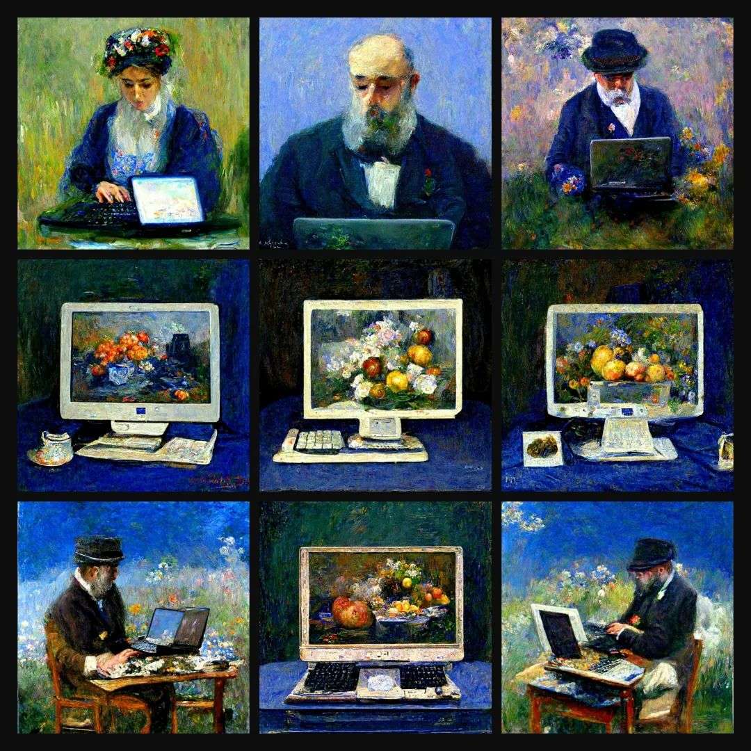 人们热衷将两种完全不搭界的对象,比如“达芬奇”和“iPhone”字样,输入 AI 程序,然后等着画面层层渲染完成。