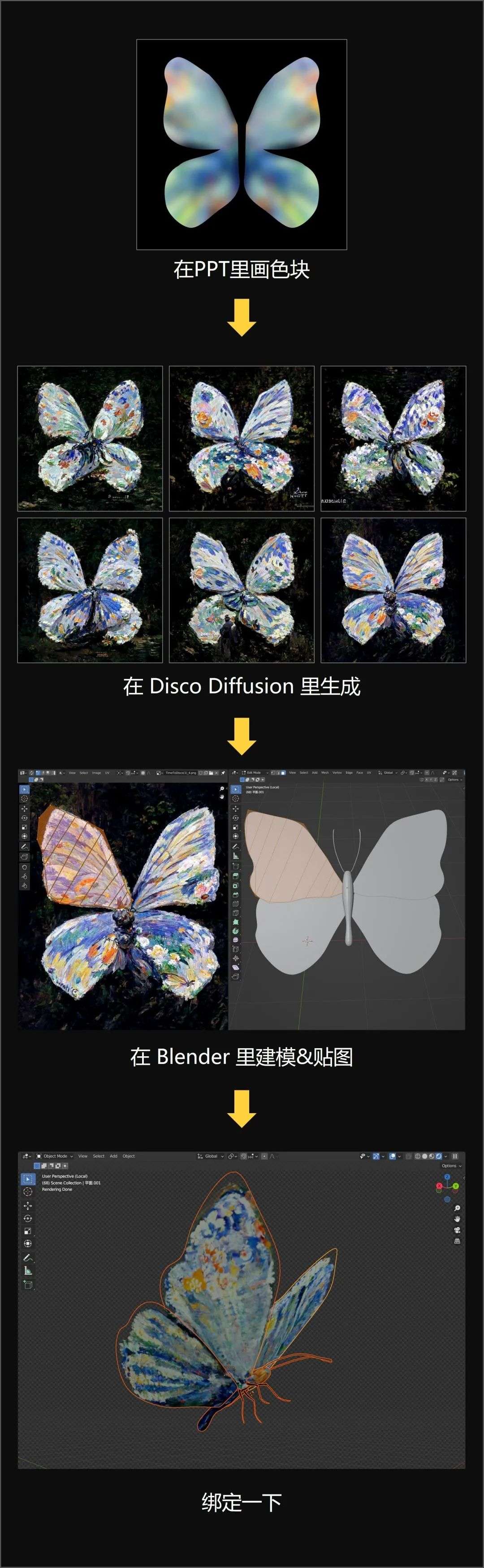 AI 生成图像完成,并不代表创意就结束了。如果你把它当成其中一个环节,再连接其他创意流程,想象空间是巨大的。