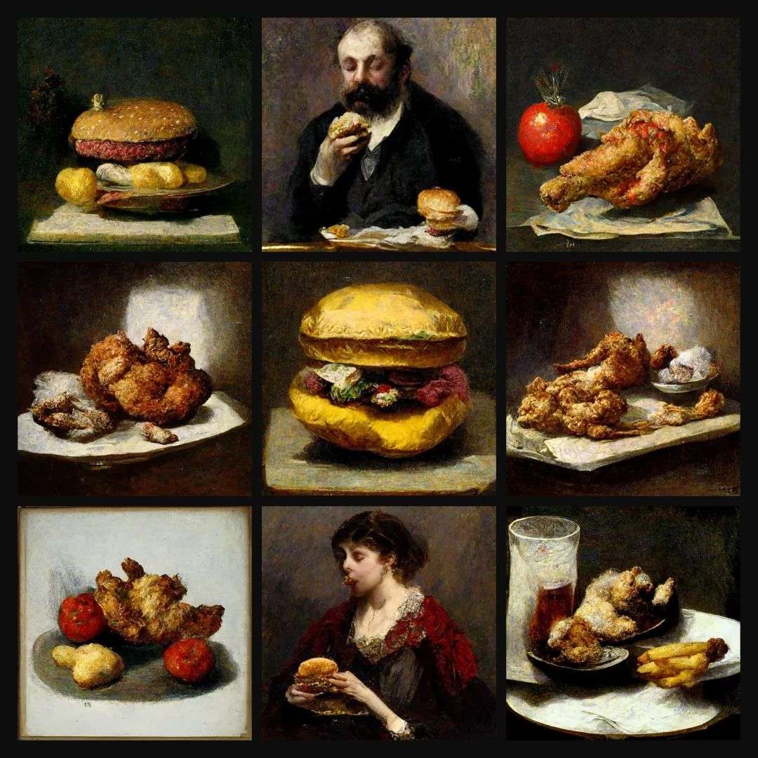 于是,我拿 Midjourney 生成了“十九世纪的麦当劳”和“十八世纪的打工人”: