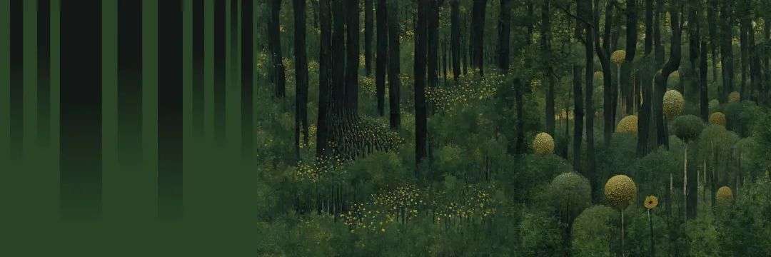 比如,我先做了一张有树木轮廓和绿色色块的底图(左),然后再操作,Disco Diffusion 就会在这个大框架下去发挥,成品为右图