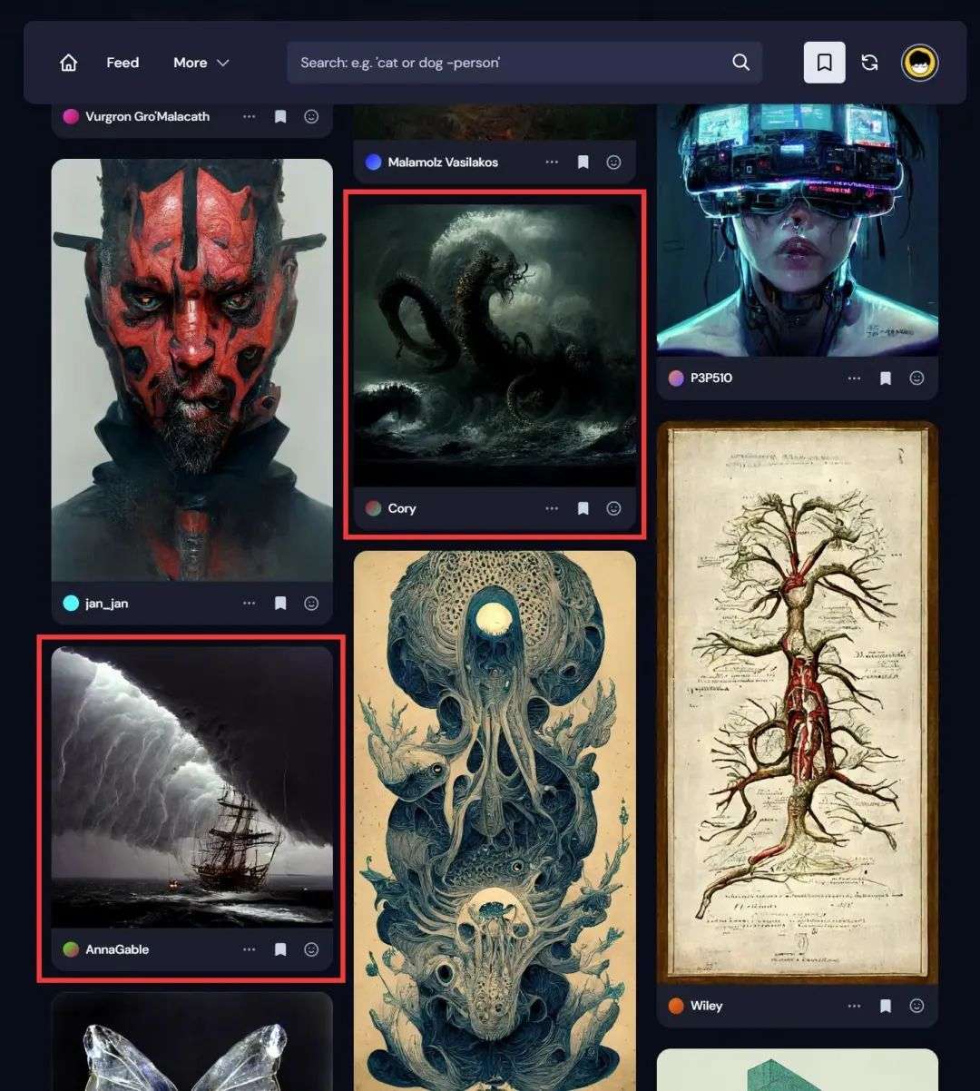 之所以说 Midjourney 是“产品化”了的 Disco Diffusion,一个是它的界面更友好,另一个是它还内建了一个创作社区,你可以看到玩家们用哪些描述词生成了什么样的画作。这就是一个极具参考价值的“画风”数据库,太适合拿来“抄作业”了。