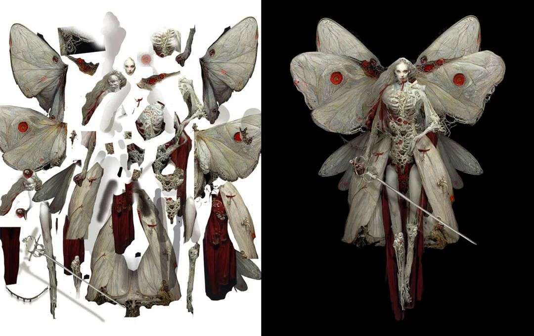 我再展示一下插画师 Nerko 的创意:他先用 Midjourney 生成自己想要的素材,然后再将这些局部组装起来。