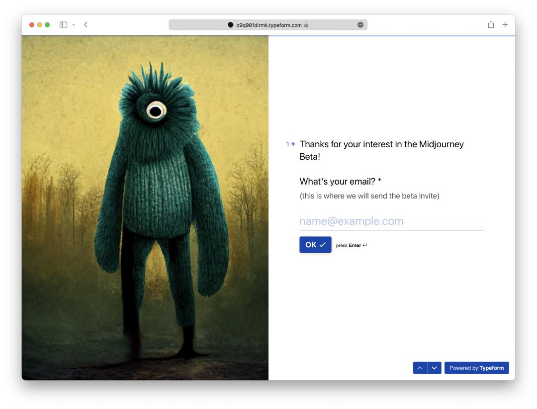 Midjourney 目前还是邀请制,内测地址:https://o9q981dirmk.typeform.com/to/zZtF1mVc?typeform-source=midjourney-gallery