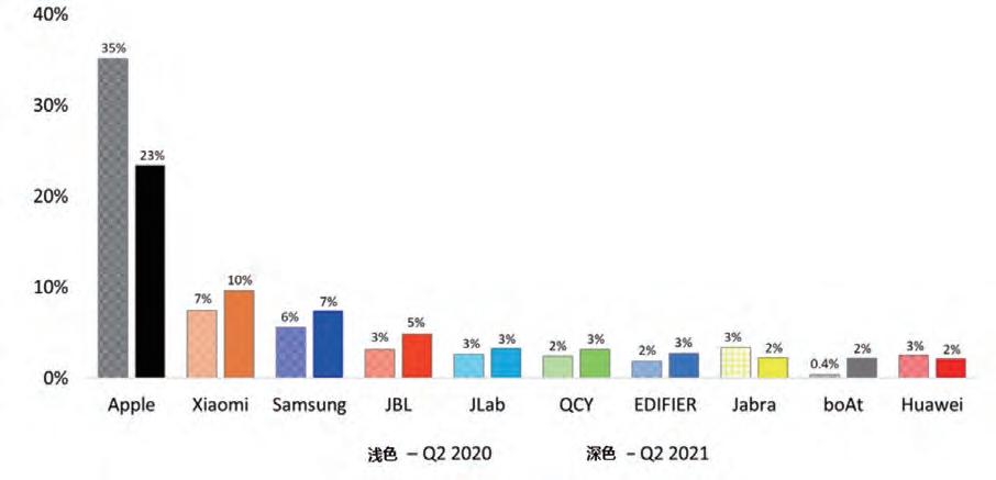 全球TWS耳机销售份额前十企业|图源Counterpoint
