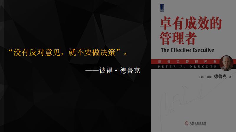 对于团队管理,最值得警惕的一定是方向性错误,它对内部成员的心理损伤最大。德鲁克在《卓有成效的管理者》中写道,通用汽车的斯隆有个好习惯,叫没有不同意见的会议就重开,直到大家提出不同意见为止。反对意见往往是打开你思维的水龙头,一旦提出反对意见,大家就在通盘重新考虑这个问题了,可能会考虑得更完善。甚至一个团队最终有没有100%的共识不重要,但达成共识的过程中聆听到反对意见,重新把问题思考透的过程是特别重要的。如果在团队管理时强行达成共识,这个账迟早是要还的。