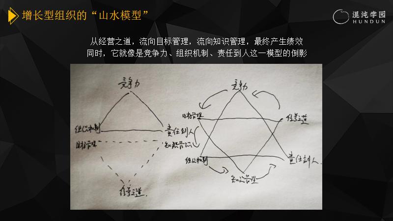 同时,经营之道、目标管理、知识管理,就像是竞争力、组织机制、责任到人这个模型的倒影,它有一个显隐的逻辑。