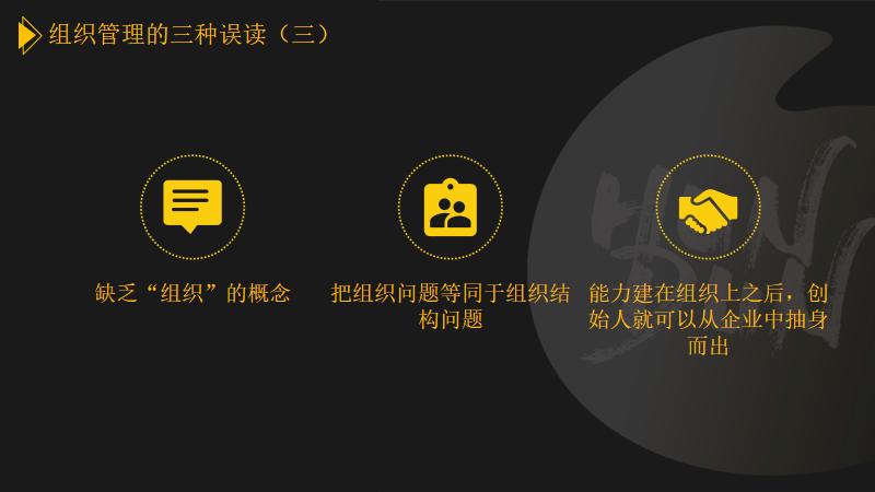 关于组织管理,许多企业做不好、做不到位的一个原因是,对组织管理缺少正确的认识。往往有三种误读,首先是缺乏对组织概念的体会,搞不懂组织管理究竟在谈什么,甚至觉得组织管理是个很深很玄的命题,好像什么都跟组织管理有关似的。