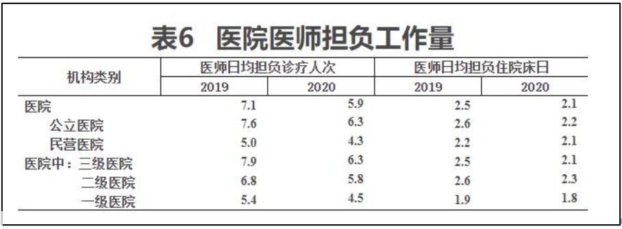 超负荷工作的中国医生 图源:2020 年我国卫生健康事业发展统计公报